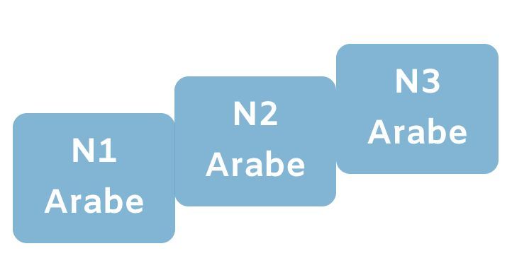 Les niveaux N1, N2 et N3 sont conçus pour les enfants qui ont de la base en arabe ou ayant fait les niveaux antérieurs chez MALAC (M1/M2/M3 ou CP1/CP2/CP-Ados). Les enfants progressent dans l'étude de la langue arabe, notamment la syntaxe et la construction de phrases grammaticalement correcte. C'est une étape clé pour arriver à s'exprimer aisément à l'oral.